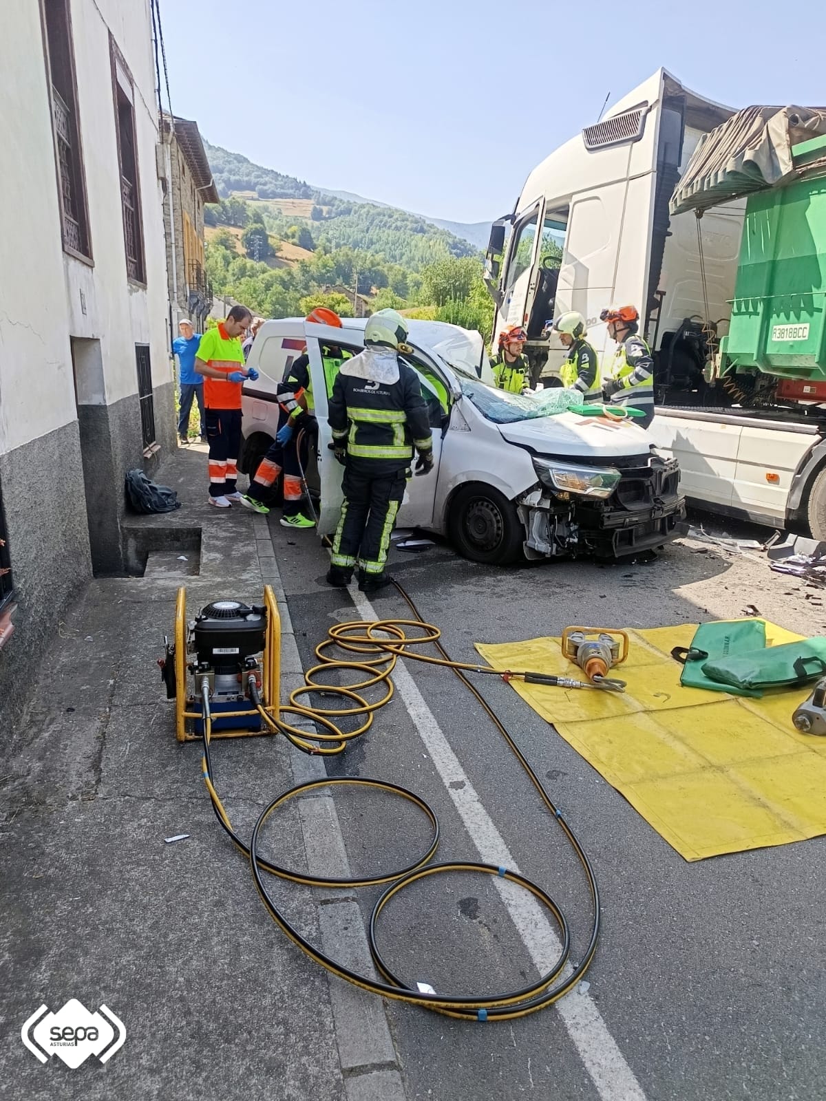 El conductor de una furgoneta ha resultado herido de gravedad tras colisionar contra un camión, en circunstancias que se desconocen, en la AS-15, en Cibuyu, Cangas del Narcea. Según los datos facilitados por el Servicio de Atención Médica Urgente (SAMU) el herido fue atendido en el lugar del accidente por el equipo médico de la UVI-móvil de Cangas del Narcea y posteriormente, dada la gravedad, evacuado en el helicóptero medicalizado del Servicio de Emergencias del Principado de Asturias (SEPA) al Hospital Universitario Central de Asturias (HUCA) en Oviedo. A consecuencia de la colisión, un choque semifrontal, el herido tuvo que ser excarcelado por efectivos de Bomberos del SEPA con base en el parque cangués. Tras retirar la puerta del conductor y levantar el techo para abrir hueco, en coordinación con el equipo sanitario, extrajeron al afectado, inmovilizado con collarín y chaleco espinal, con ayuda de la tabla de rescate. El conductor del camión resultó ileso. El Centro de Coordinación de Emergencias del 112 Asturias recibió el aviso a las 12.19 horas. En la llamada señalaban que se había producido una colisión entre un camión y una furgoneta y su conductor estaba atrapado. La Sala 112 del SEPA activó una dotación, con cinco efectivos de bomberos del parque cangués y al Jefe de Zona Suroccidental. Paralelamente se pasó el aviso al SAMU que envió el equipo médico de la UVI-móvil canguesa y posteriormente, dada la gravedad, solicitó la intervención del helicóptero medicalizado del SEPA. Además, se informó a la Guardia Civil de Tráfico. Realizada la excarcelación y realizadas tareas de seguridad y normalización de la vía los bomberos retiraron del lugar para regresar a base a las 13.36 horas.