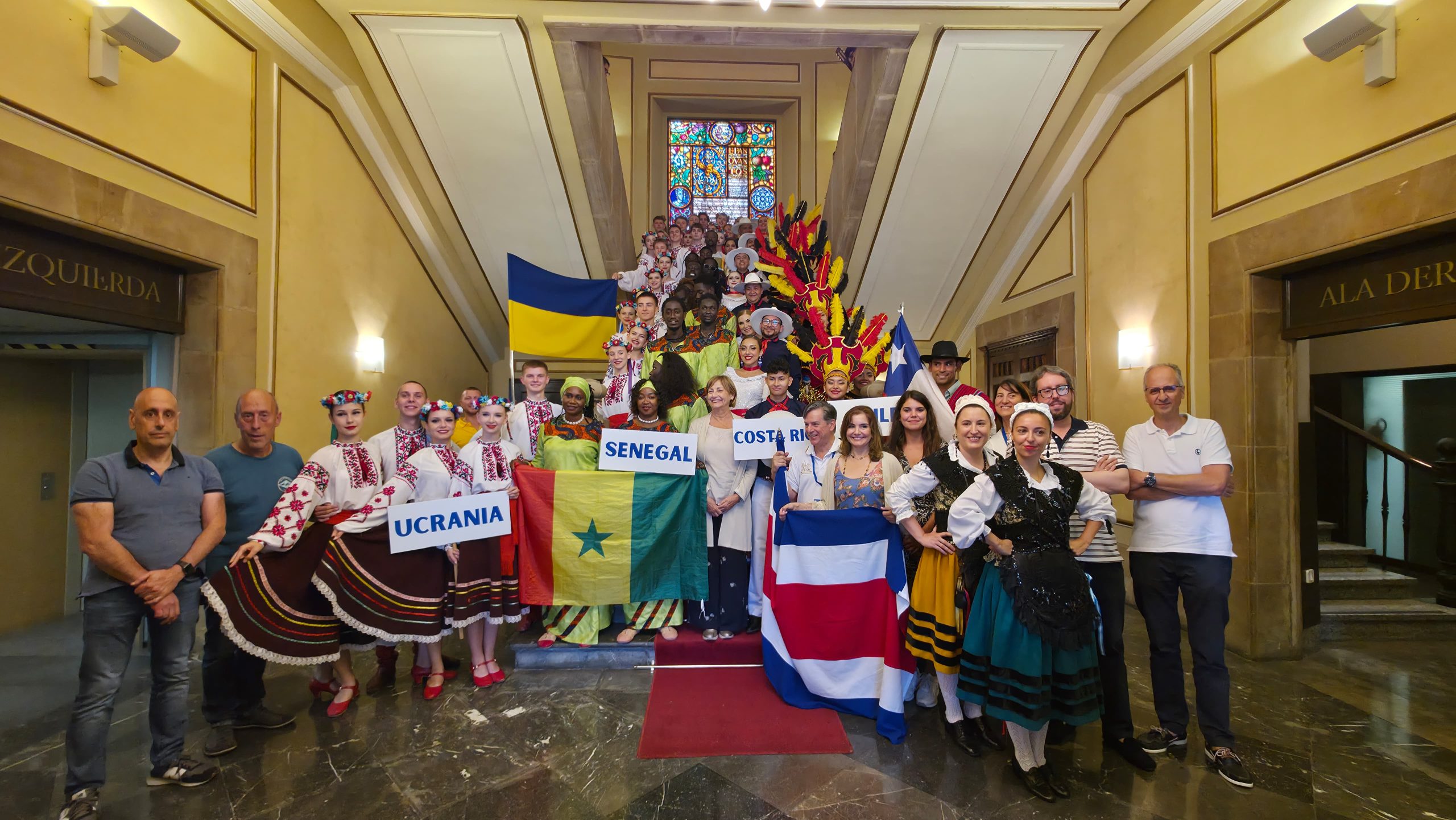 En esta edición del Festival actuarán agrupaciones procedentes de Ucrania (Grupo de Danza Folklórica y Orquesta de Instrumentos Folklóricos «Horlychka»), Costa Rica (Ballet Folclórico Nayuribes), Chile (Compañía de Danzas Tradicionales Kirqui-Wayra), Senegal (Ballet Folclórico “Jammu”) y España (Agrupación folklórica Sabugo ¡Tente firme!). La alcaldesa de Avilés, Mariví Monteserín; la concejala de Cultura y Festejos, Yolanda Alonso, y miembros de la Corporación Municipal ofrecen una recepción oficial a las agrupaciones que participan en el XLIV Festival Internacional de Música y Danza Popular.