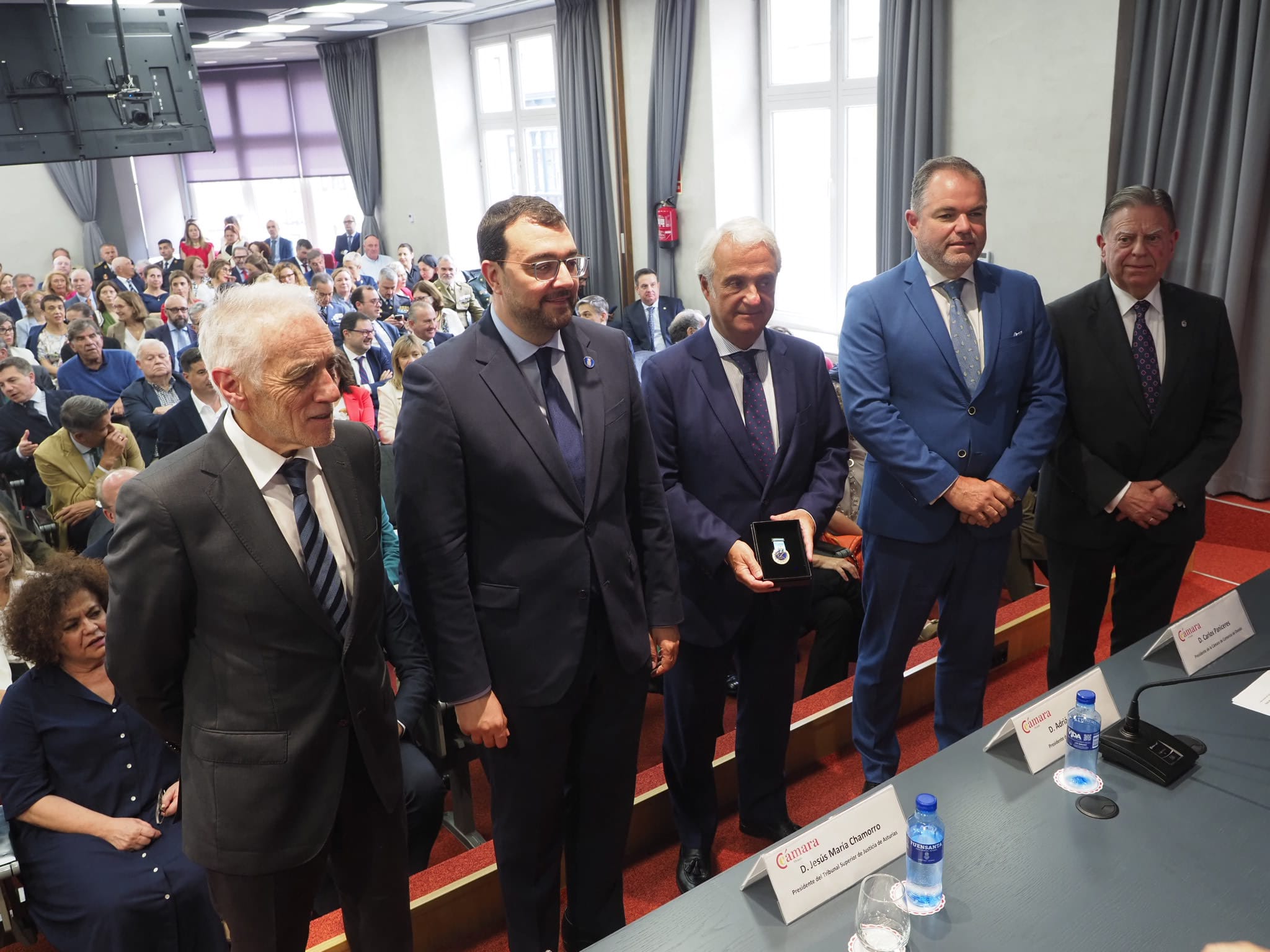 Compartir Facebook Gorjeo LinkedIn Pinterest Correo electrónico Copiar enlace Acto de entrega de la Medalla de Oro de la Cámara de Comercio, Industria y Navegación de Oviedo al presidente del Tribunal Superior de Justicia de Asturias (TSJA), Jesús María Chamorro. destacadp