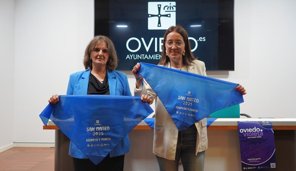 La concejala delegada de Políticas sociales, María Velasco; la edil de Festejos, Covadonga Díaz y Irene González, de la Asociación de Apada, han presentado esta mañana, en rueda de prensa, varias acciones en materia de accesibilidad y respeto que se pondrán en marcha durante las fiestas de San Mateo, que comienzan mañana día 11.