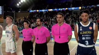 - Minuto de silencio en el Palacio de los deportes antes del Alimerka Oviedo Baloncesto Hestia Menorca en memoria de los dos mineros fallecidos en Cangas del Narcea