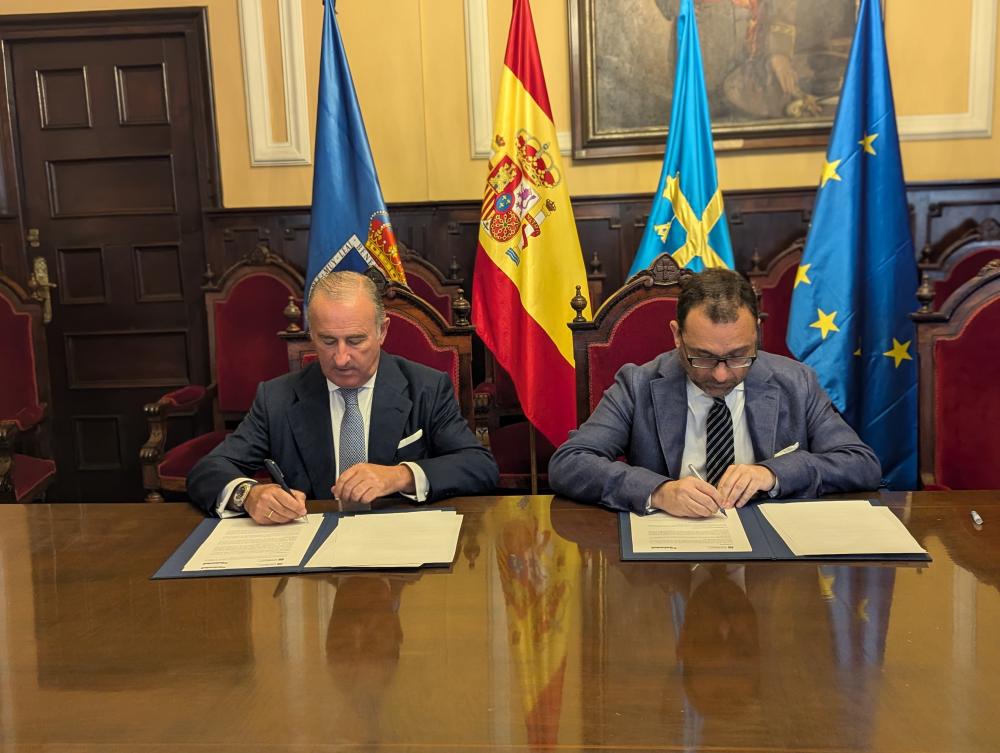El presidente de la Fundación Municipal de Cultura, David Álvarez, y el director general de Sabadell Herrero, Pablo Junceda, han firmado esta mañana un acuerdo de colaboración para el desarrollo de la exposición de ‘Eduardo Chillida. La presencia del vacío’, que se podrá visitar en la sala de exposiciones Sabadell Herrero de la calle Suárez de la Riva, del 25 de septiembre al 14 de diciembre de 2025